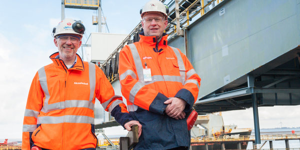 Plant managers Ian Pedonomou van Nobian MEB en Roel van Wezel van Nouryon MCA...