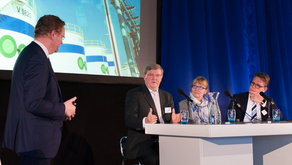 Tijdens de opening van het waterstoftankstation was Knut Schwalenberg van AkzoNobel Specialty Chemicals volstrekt helder over de verdere kansen voor waterstof in Delfzijl.