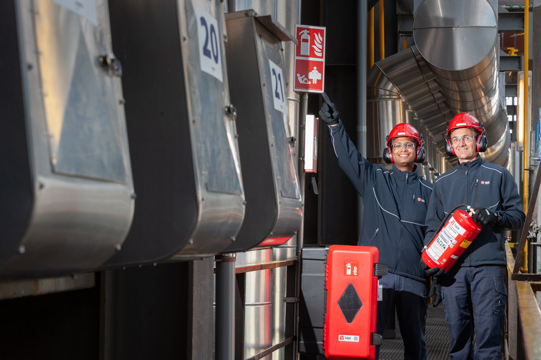 Falck Fire Services keurt elk jaar de kleine blusmiddelen bij haar klanten op het Chemie Park Delfzijl. Daarbij wordt volgens de REOB-normering gekeken of en wat voor onderhoud er nodig is en de houdbaarheidsdatum wordt gecheckt. Bij de opstart van de tweede methanolfabriek (M2) bij BioMCN werd een vernieuwing doorgevoerd in de vorm van veiligheidspalen. Dat is een paal op een cruciale plek in de fabriek met een brandblusser, een branddeken en duidelijke etikettering erop.