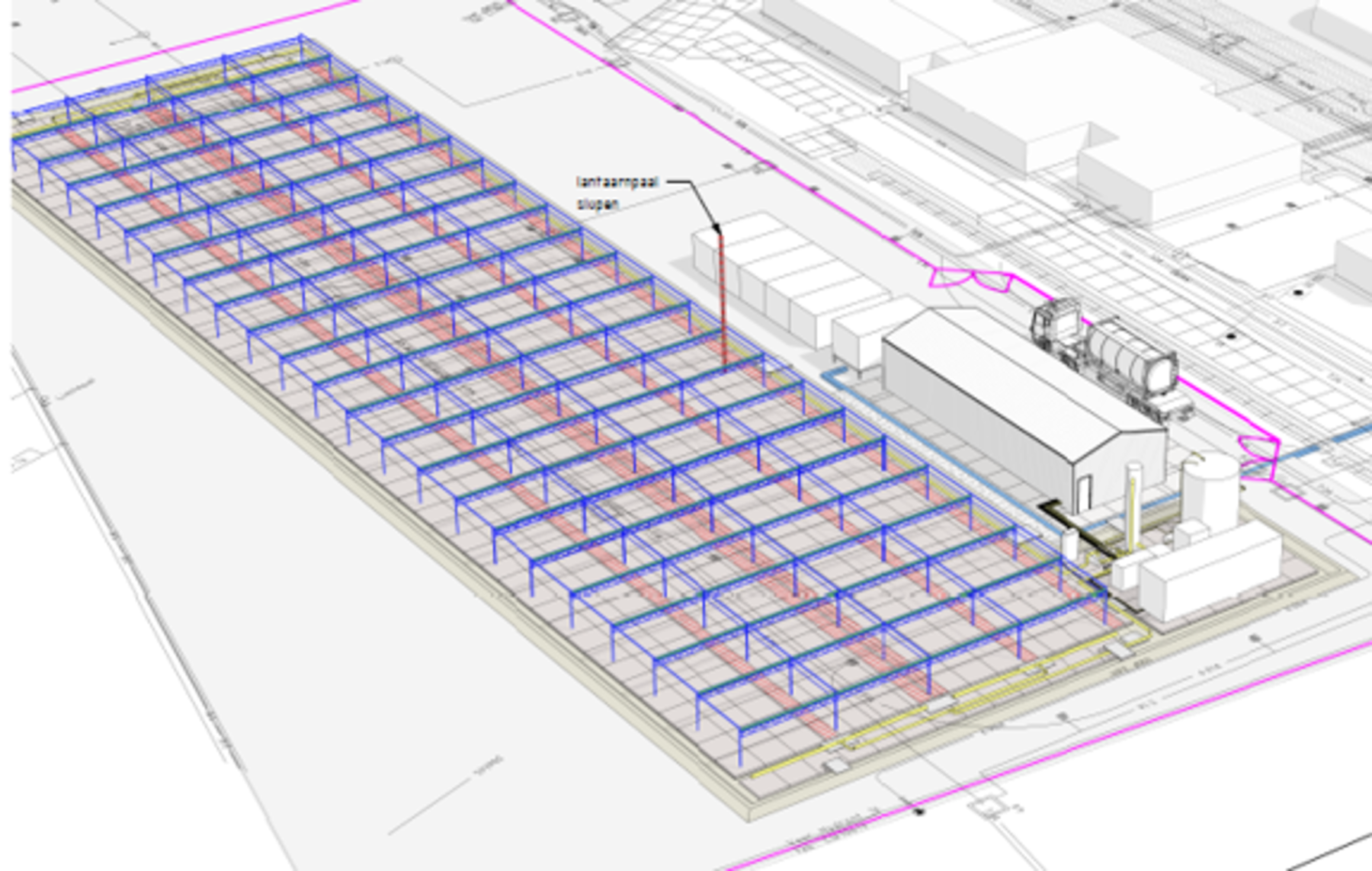 De proeffabriek, met een afmeting van 30 bij 100 meter, bestaat uit een drie kilometer lange buis van dun en doorzichtig folie. Daarboven komt een overkapping om de hoeveelheid zonlicht en warmte te reguleren. De bacteria gedijen namelijk het best tussen de 5°C en de 30°C. Voor Stork is het een leuk project. “Niet groot, maar wel nieuw en geheel in lijn met de vergroening van de chemie op onze site”, aldus René Hartman, business manager van Stork. “Als industriële dienstverlener doen we dat met inzet van alle disciplines: van kunststof, elektrotechniek tot en met de inkoop van de materialen.”