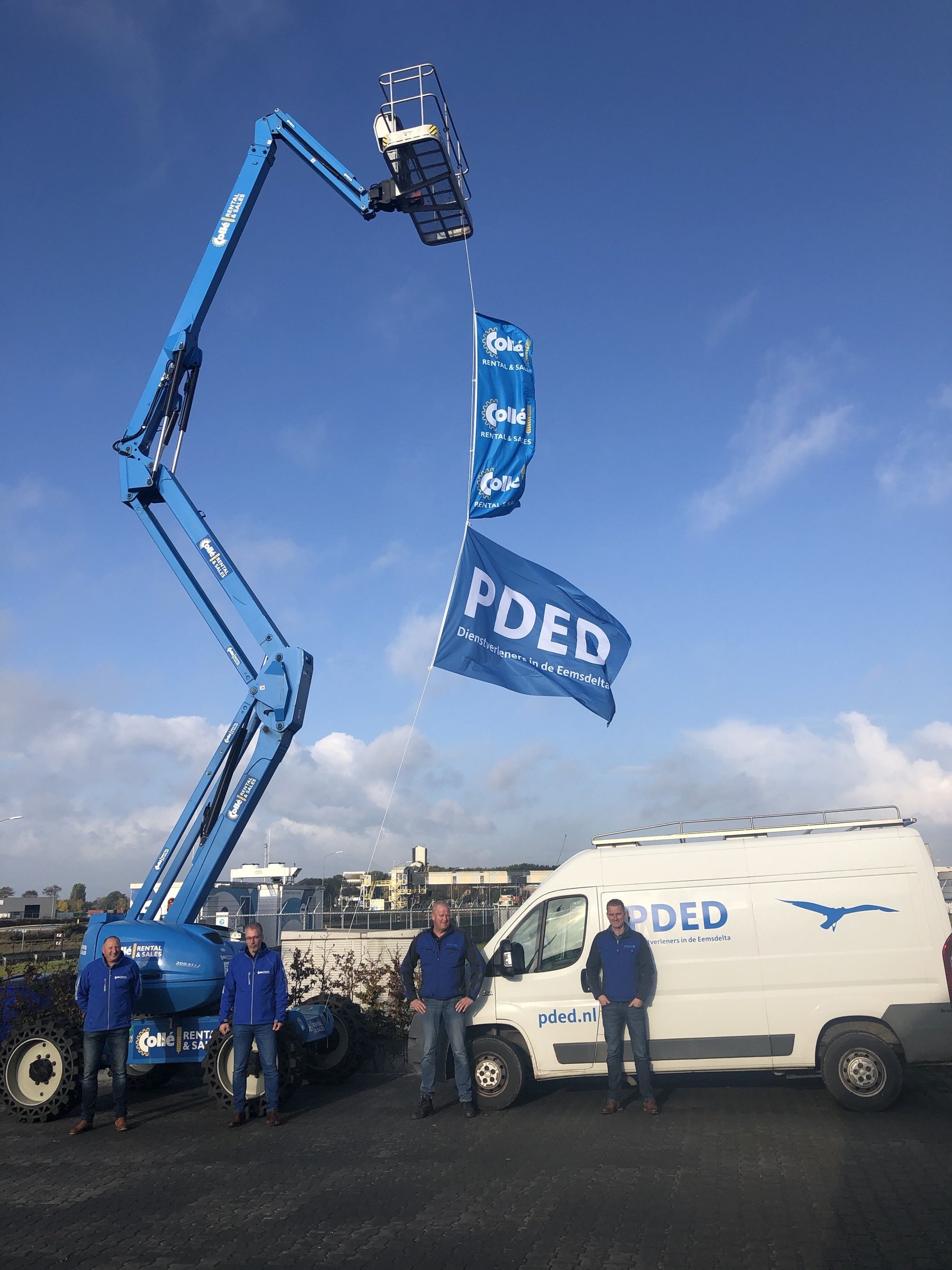 In het licht van haar groeiambities is PDED een samenwerking aangegaan met Collé Rental & Sales dat onder andere vestigingen in Eemshaven en Kolham heeft. Daarmee is het nu mogelijk om heel snel een hoogwerker te huren. Er staan op het Chemie Park twee kniktelescoophoogwerkers van 12 en 20 meter paraat. “Voor de klant is er, naast de snelle levering, het voordeel dat er geen transportkosten bij komen. Het is dus sneller en goedkoper.”