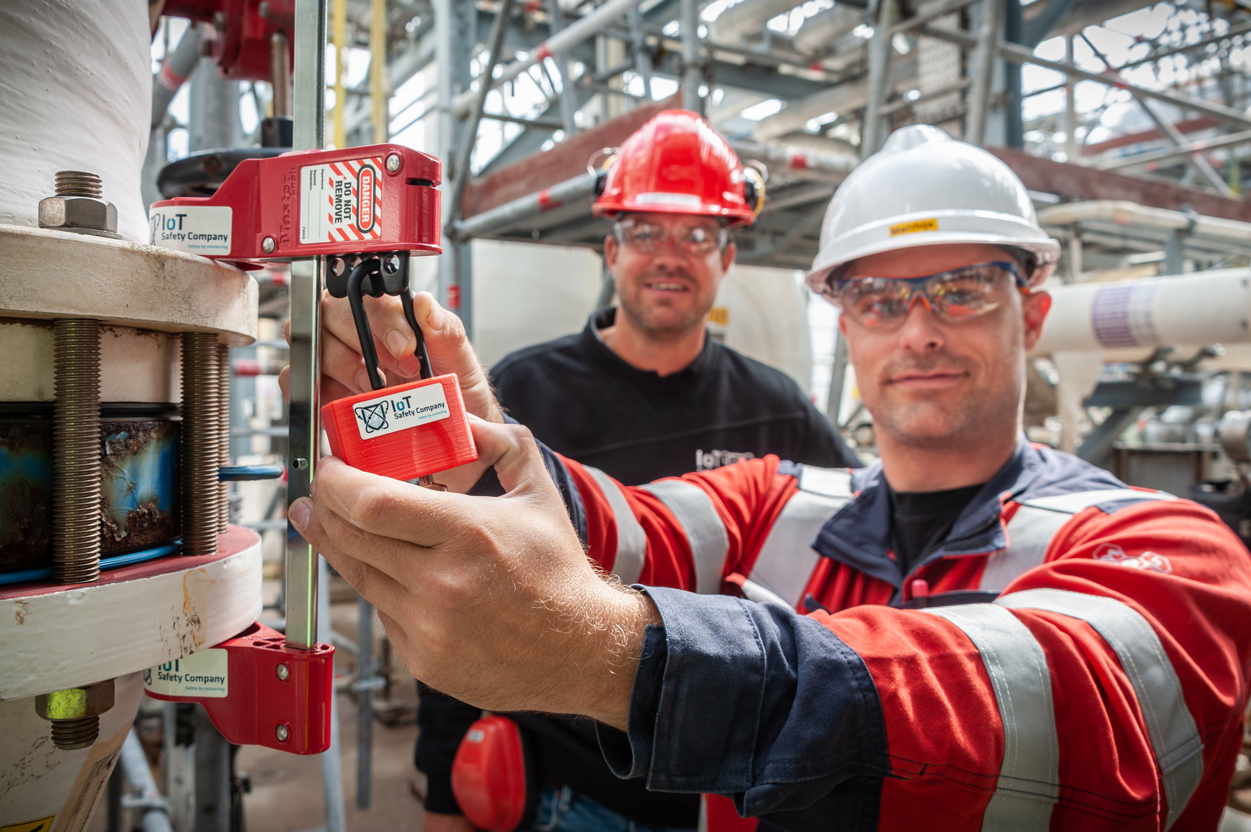 Handig bij zogenaamde procedure-afsluiter. “Zo’n speciale afsluiter heeft altijd al een slot, omdat het openen of sluiten hiervan meer risico’s geeft, maar waarbij het gebruik minimaal is”, aldus Roel van Wezel, tegenwoordig site manager van Nouryon in Delfzijl. “Een slimme verzegeling geeft een melding in de meetkamer wanneer ie wordt geopend. Het is een extra reductie van risico’s.”