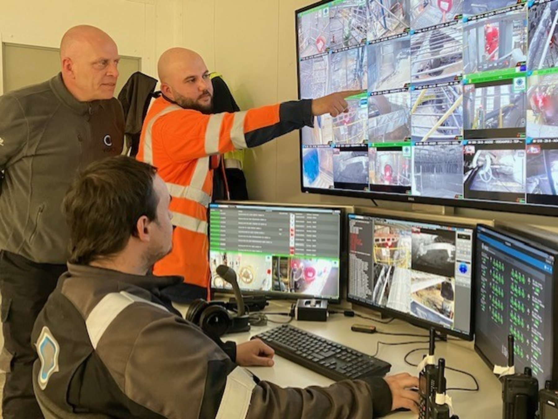 Tijdens een recente stop zette Nobian de digitale tegenhanger van de traditionele mangatwacht in. Daartoe werd Visics ingeschakeld. “Wij leveren 24/7 digitaal toezicht op besloten ruimtes. Dat doen we door middel van camera’s, een registratiesysteem en een directe communicatielijn via een intercom”, legt Raymond Schrijvers van Visics uit. “Twee medewerkers houden op twee grote schermen elk twaalf besloten ruimtes in de gaten.”