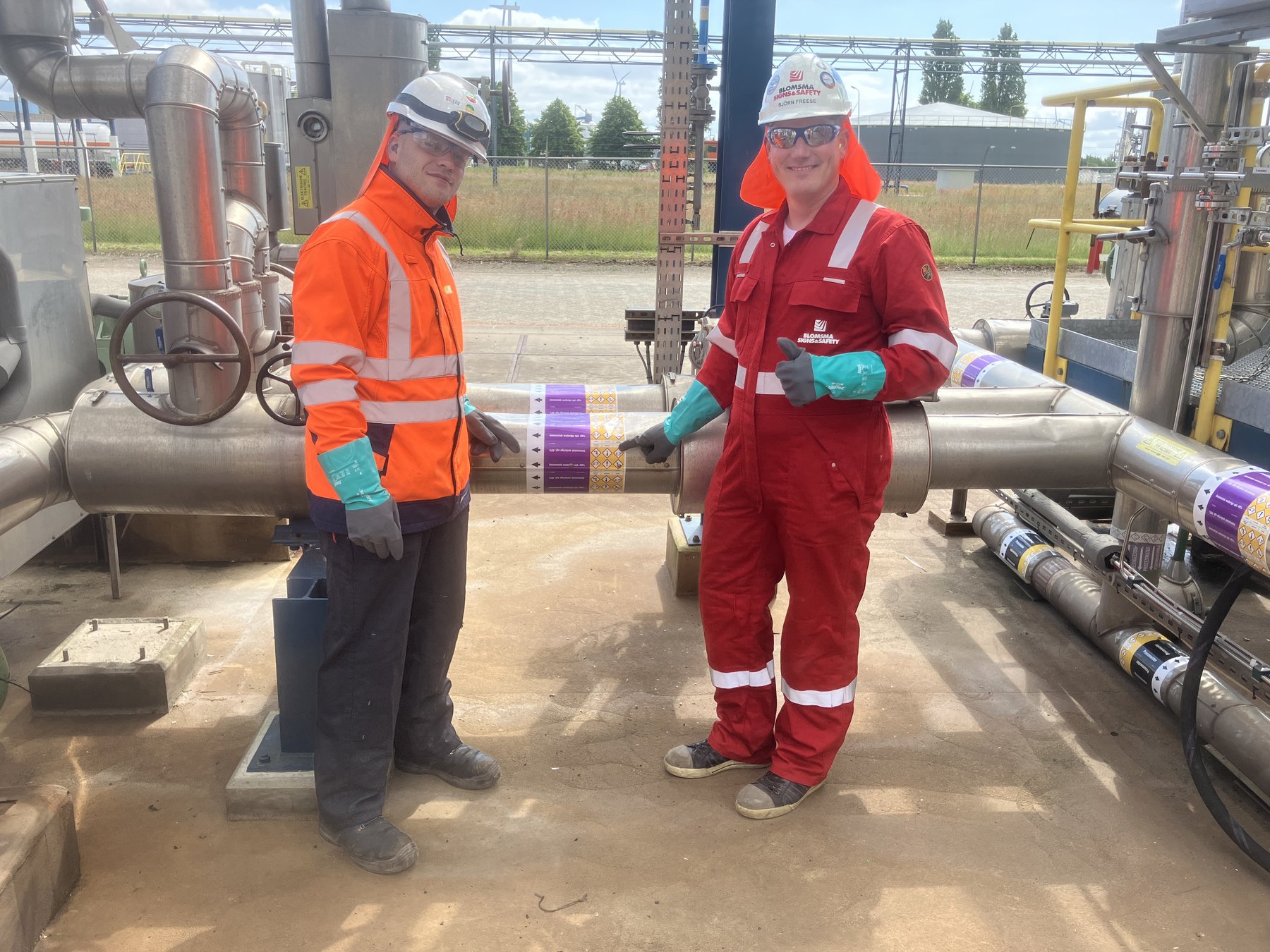 Delamine voorziet hele fabriek van nieuwe markeringen op leidingen.