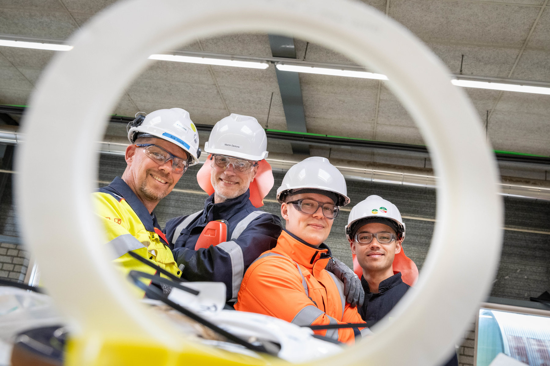 V.l.n.r. Rick Goede, Martin Derkink, Remco de Vries en Niels Mulder (Delamine) bundelden de krachten inzake issues met pakkingen